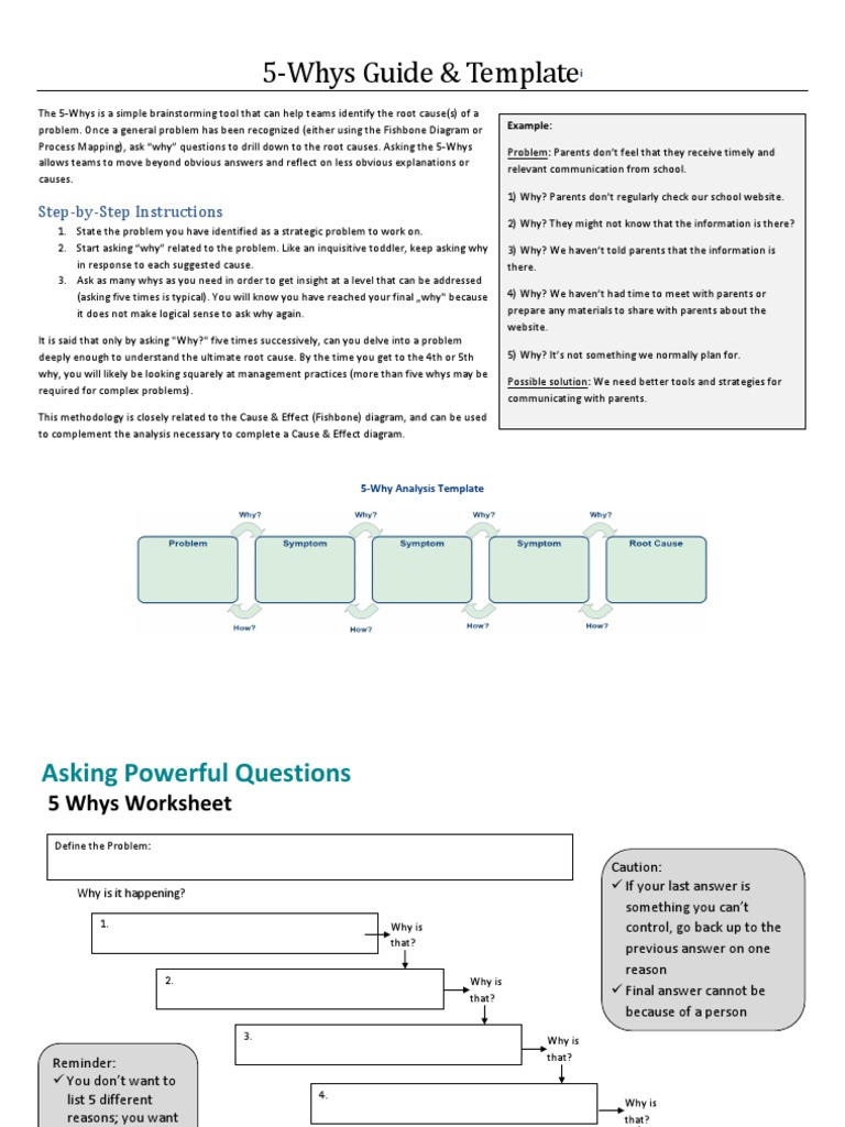 Begin by identifying a specific problem and ask why this. The 5 whys worksheet the 5 whys tool aids in the identification of the root cause of a problem. Once a general problem has been.