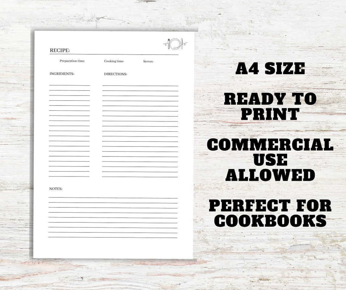 Blank Recipe Book Printable PDF A4 Family Cookbook Template Clean
