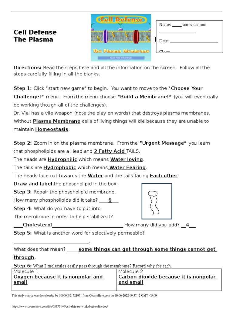 Cell Defense The Plasma Membrane Worksheet - Follow all the steps carefully. Learn at your own pace. Cell defense the plasma membrane game location directions: Read the steps here and all the information. Plasma membrane structure and function, roles of phospholipids, transport proteins (carrier and channel),.