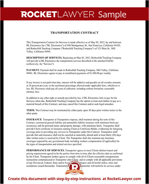 Transportation Contract Agreement Template Transport Informations Lane