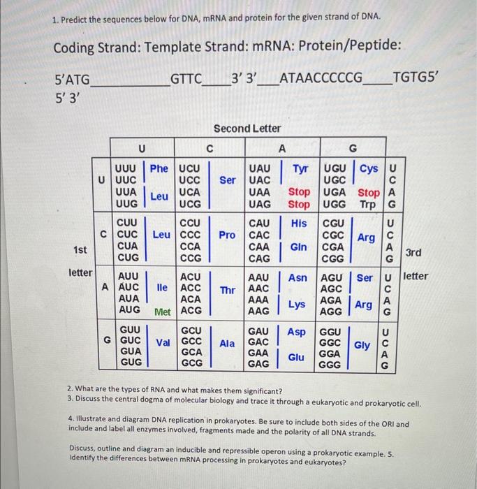 Solved 1. Predict the sequences below for DNA, mRNA and