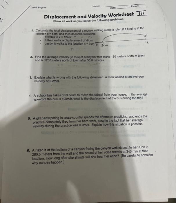 Solved 13 AHS Physics Name Date Displacement and Velocity
