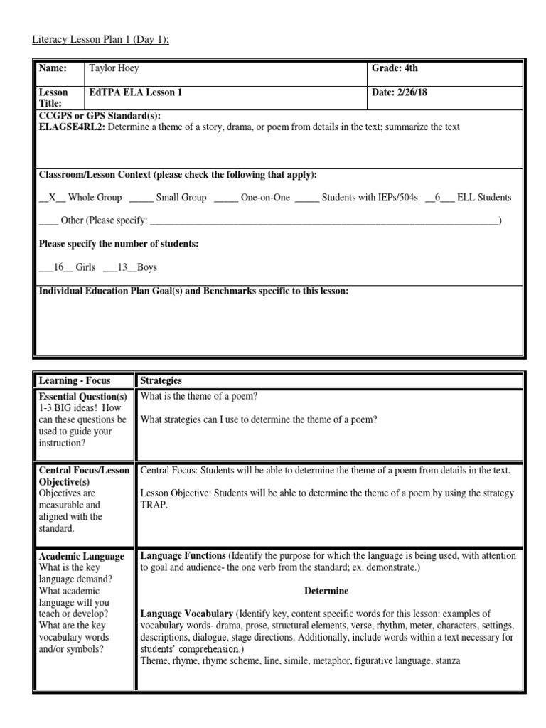 8th Grade Ela Lesson Plans Pdf