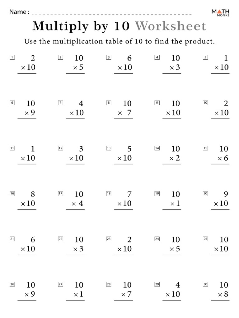 Multiplication by 10 Worksheets Math Monks