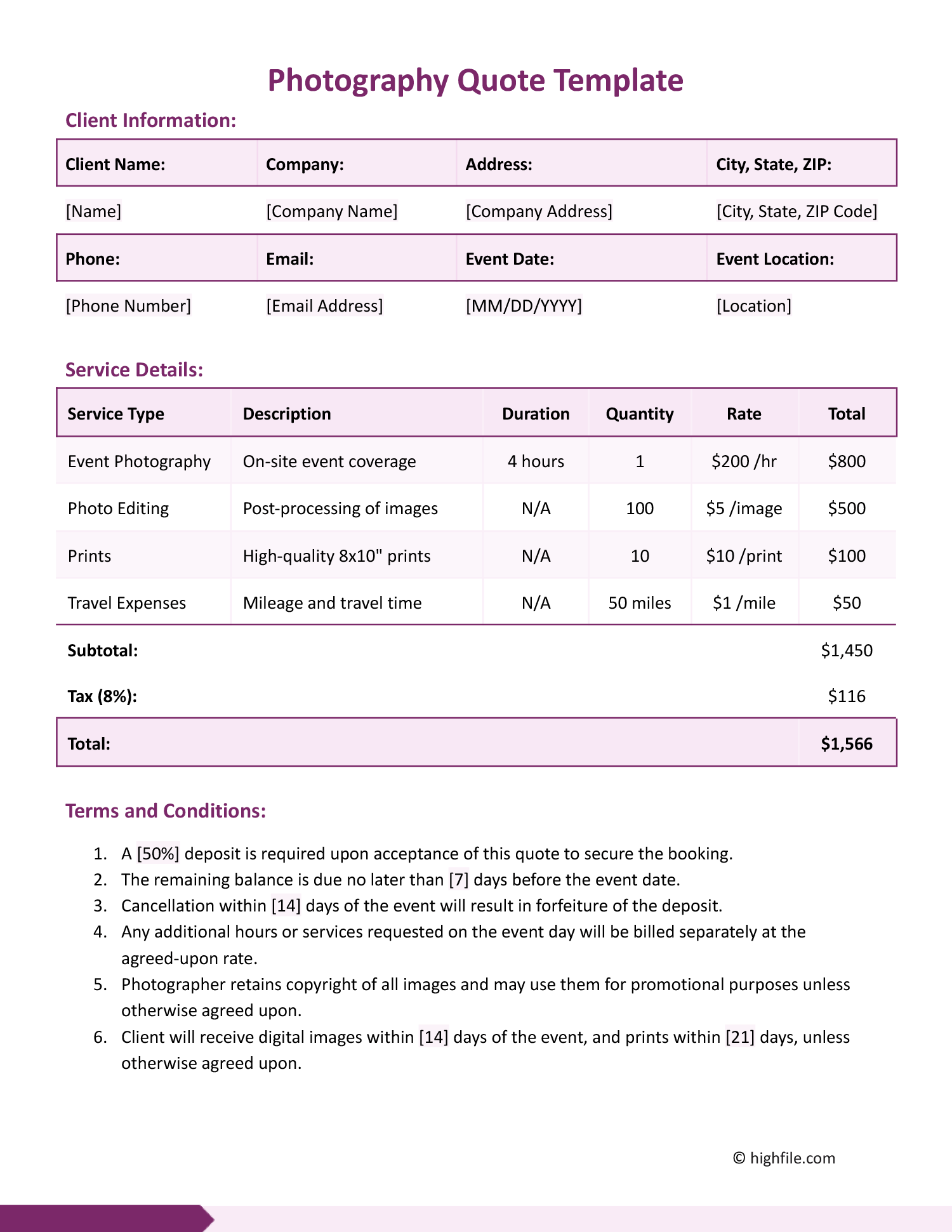 Product Photography Quote Template Word PDF Google Docs Highfile