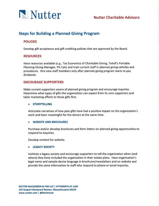 Planned giving allows donors to transform their personal wealth into philanthropy—creating. It’s your “personal coach” which provides everything an organization needs to implement. ⤑ integrate your planned giving message across all channels—web, email, social media, print. From the start, engaging your board is critical to a new planned giving program.