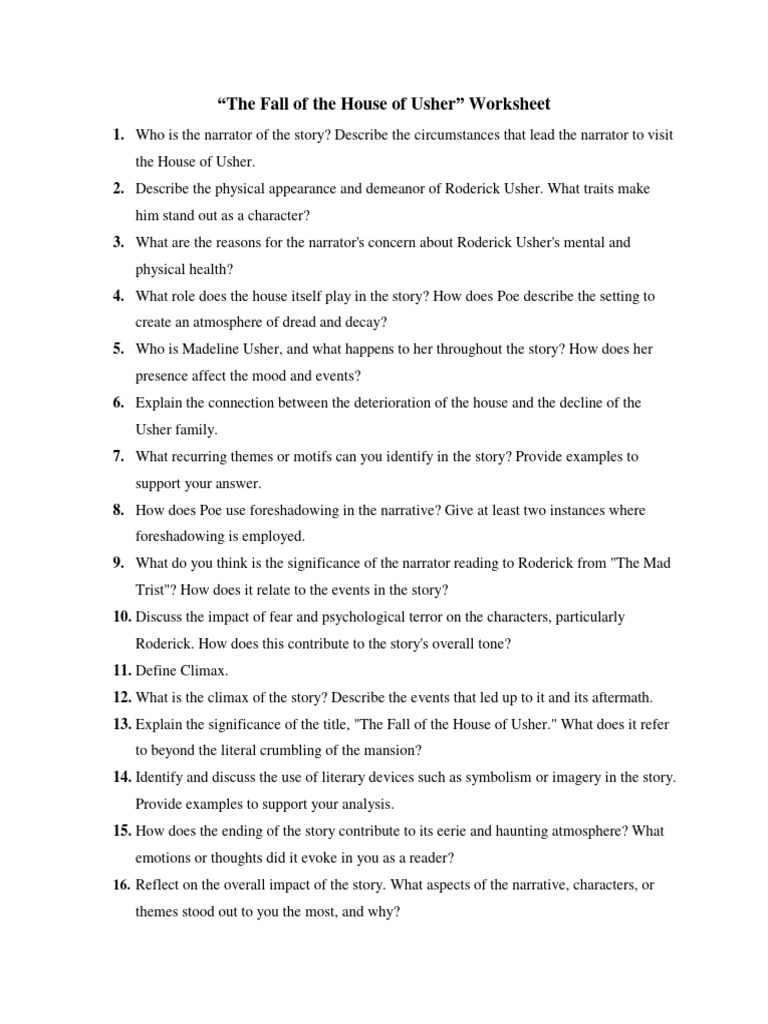 Fall Of The House Of Usher Worksheet
