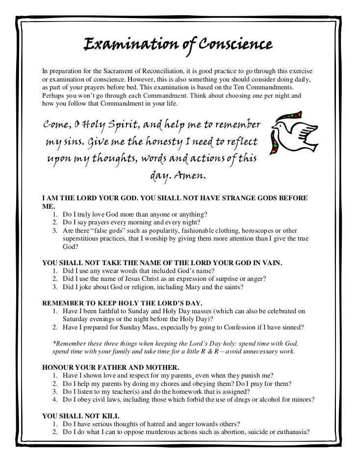 Examination of conscience before going to the sacrament of reconciliatien, pray through the following questions. Worksheets are examination of conscience for youth revised 2 2. Confess your sins to a priest 4. Be sincerely sorrowful for your sins 3. Examination of conscience for adults and teens the beatitudes 1.
