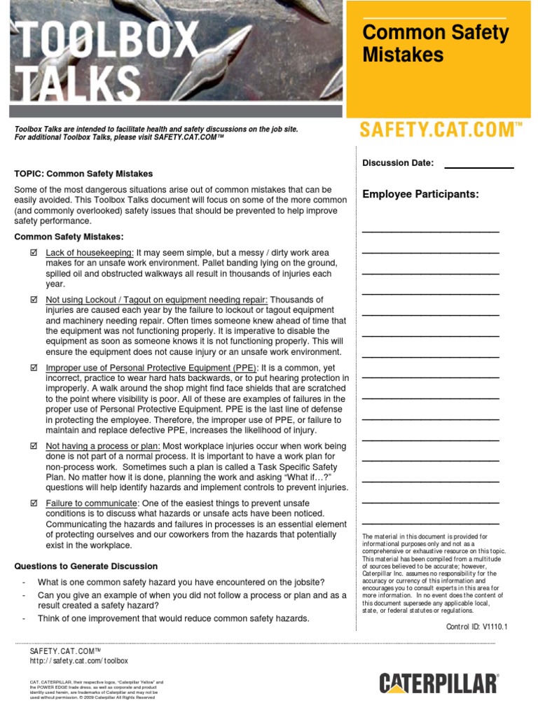 An explanation of the hazard. Print them off to use for. Scroll down to browse the list of 250+ completely free safety talks below! Each construction toolbox talk includes: