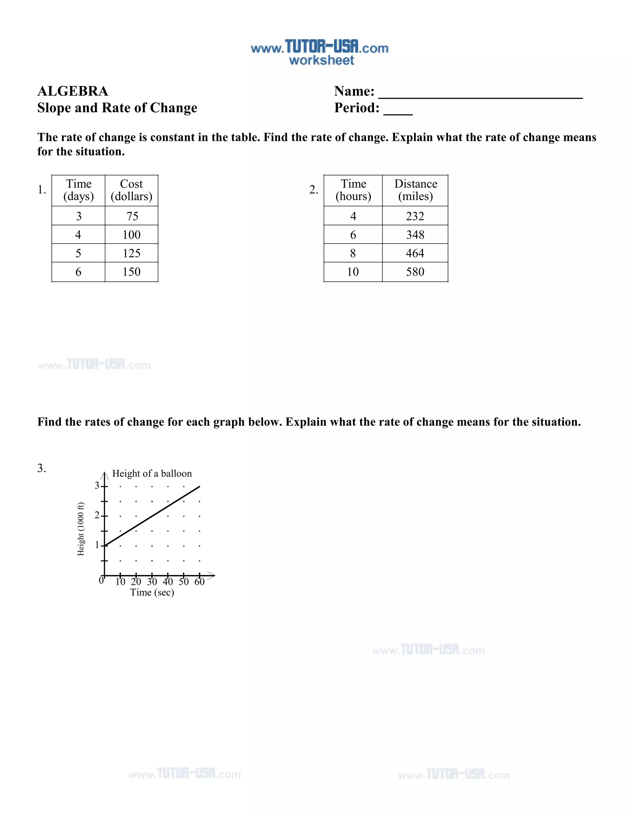 Rate Of Change From A Table Worksheet Printable Word Searches