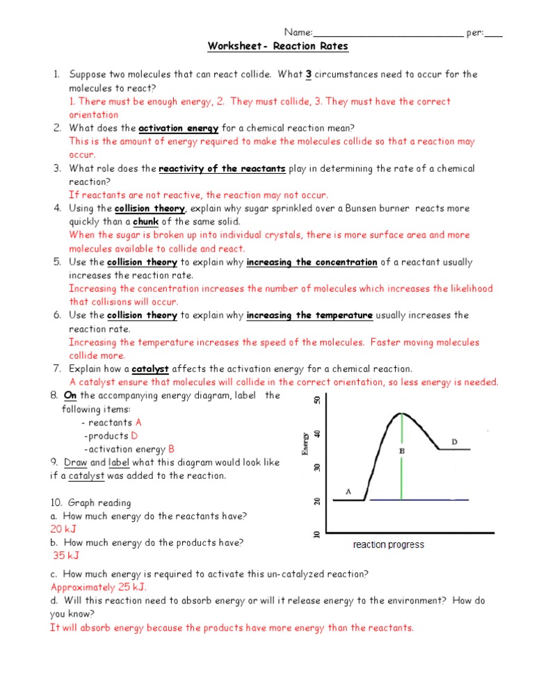 Chemistry Worksheet Mole (Unit) Reaction Rate