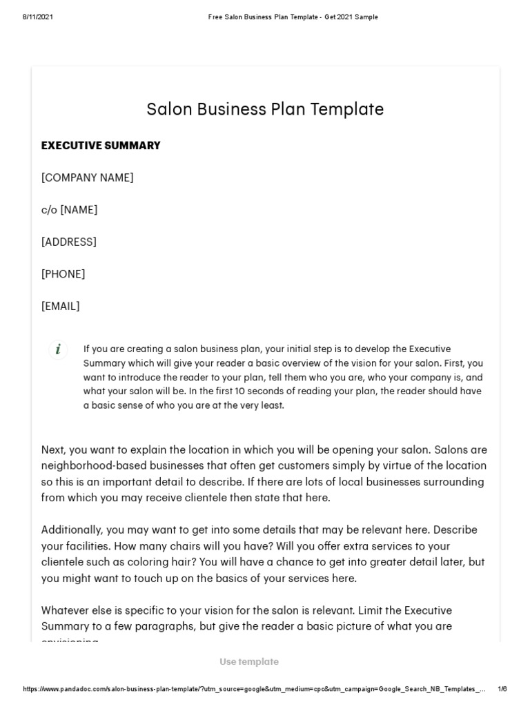 Free Salon Business Plan Template Get 2021 Sample PDF Marketing