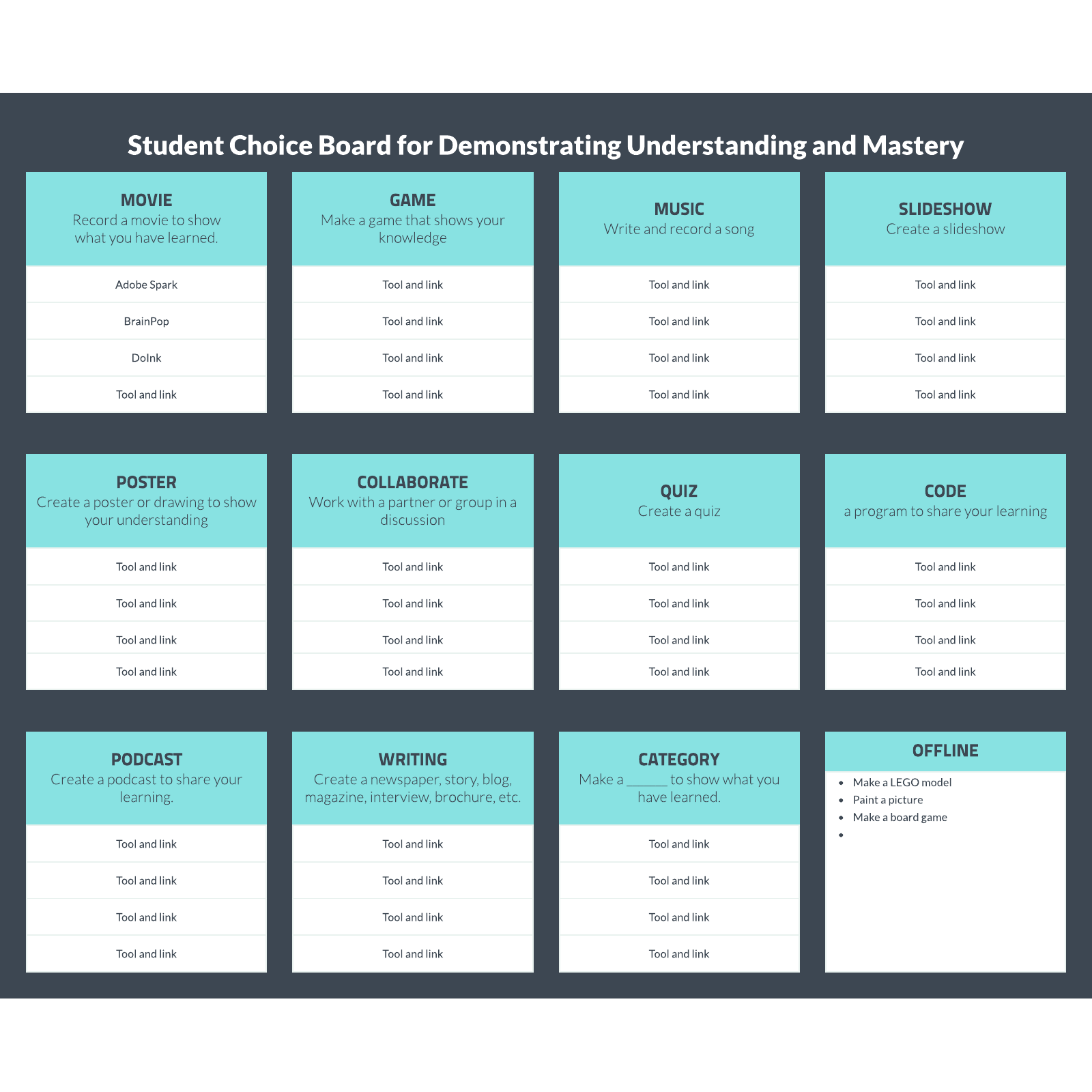 Student Choice Board Template - They can be used to give students choices when they finish early, need a brain break, or select a reward.