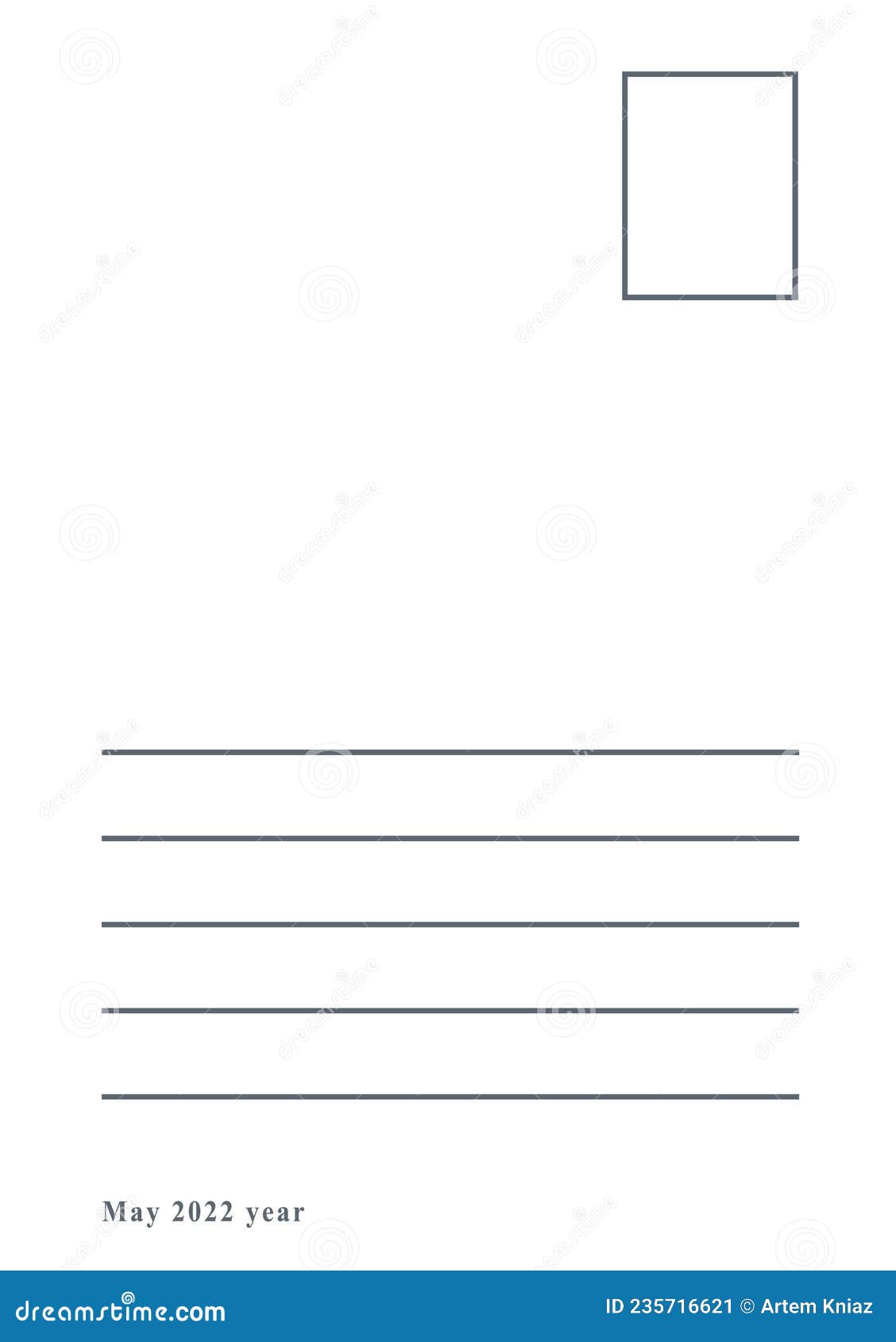 Post Card Back Side for Address and Postage Stamp Place, Vertical